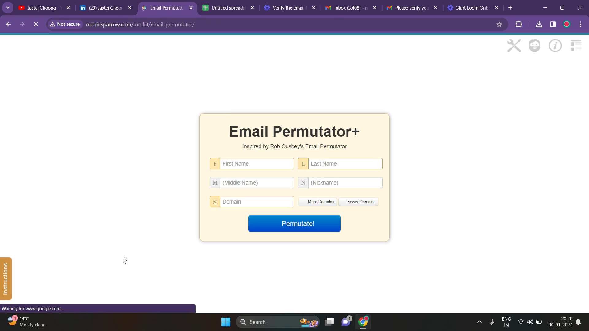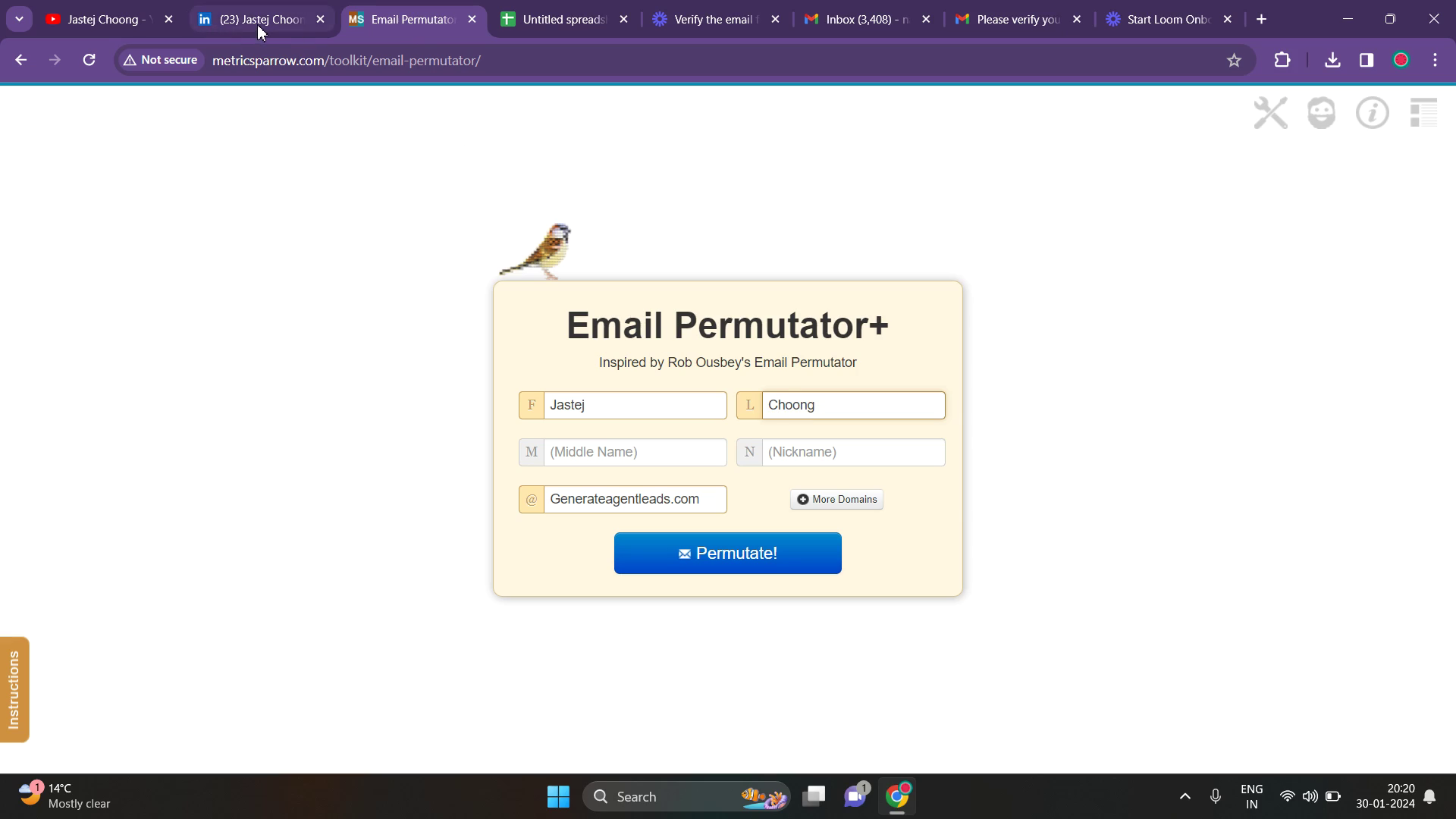 Next, determine the domain associated with the prospect’s company. For example, if the prospect is affiliated with a company called "Generating Leads," the domain will be generatingleads.com.