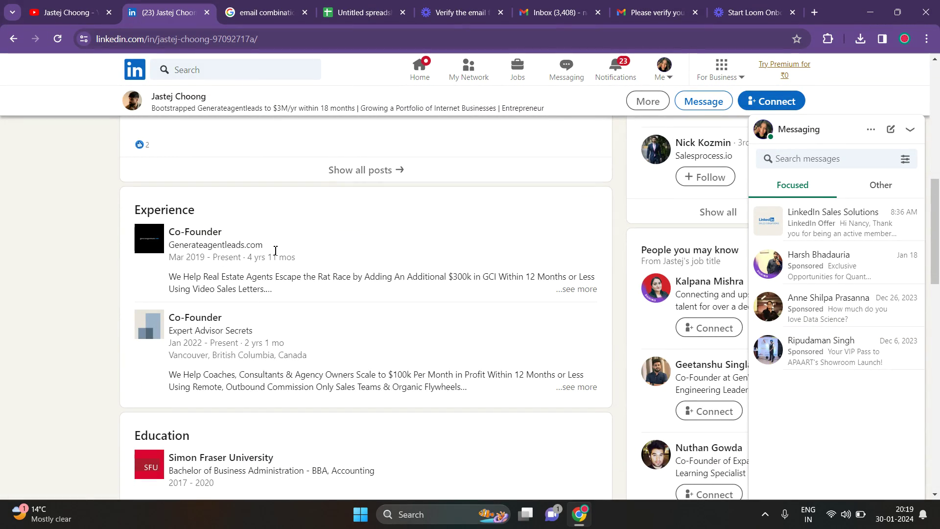 Once you've found the prospect's LinkedIn profile, look for clues about their business or company domain. This is typically found in their profile description or under their current company information.