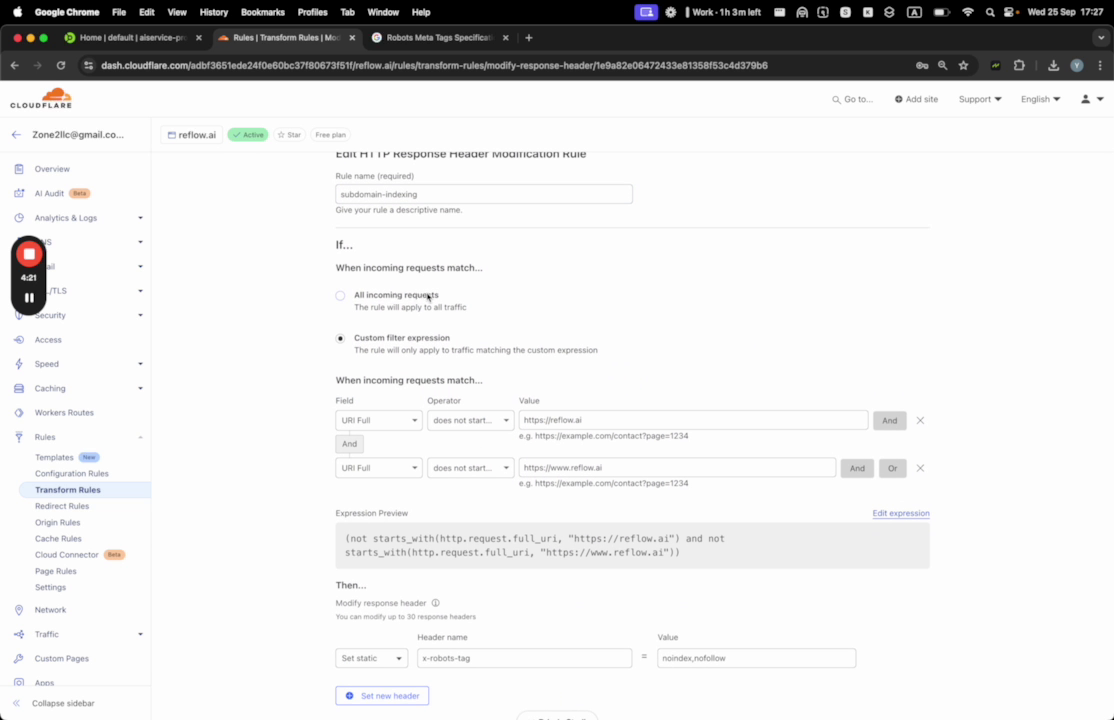 This guide provides a step-by-step process on how to non-index a domain or subdomain using Cloudflare. By following these instructions, users will learn how to set up transform rules that prevent their website from being indexed by search engines.