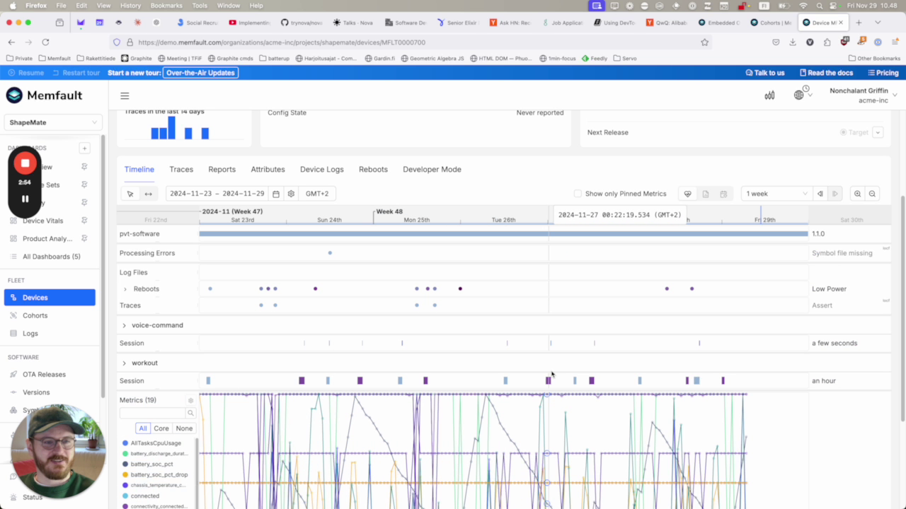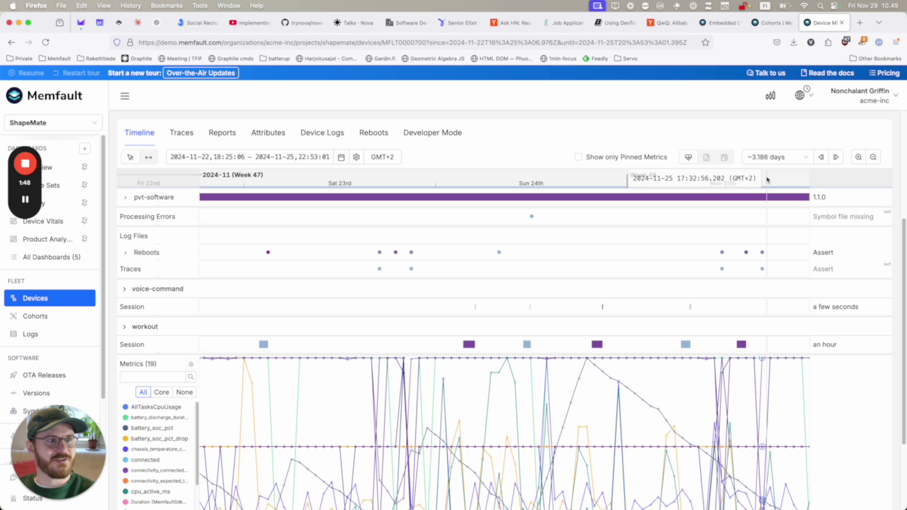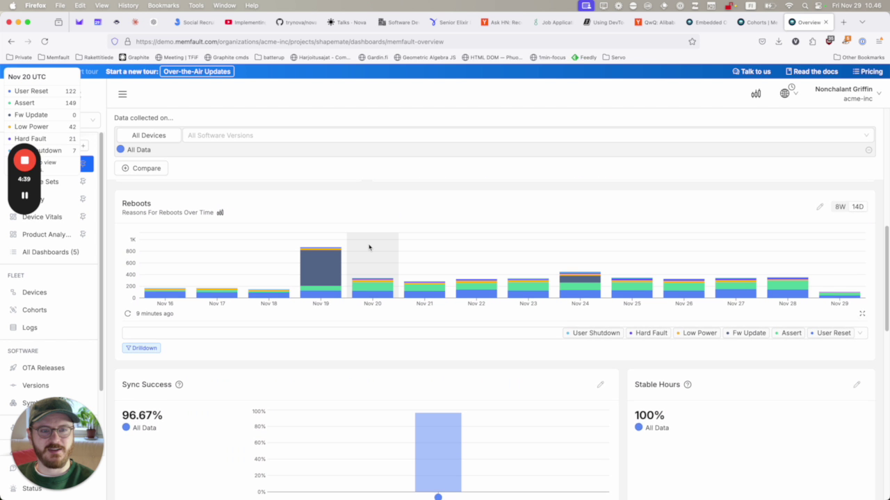 This guide provides a detailed walkthrough of the Memfault IoT dashboard and its features, as demonstrated in a recent presentation. You will learn about the dashboard's capabilities, such as filtering, adding charts, and using the time sync mode to compare device data. By the end of this guide, you will have a comprehensive understanding of how to navigate and utilize the Memfault dashboard for managing IoT devices.