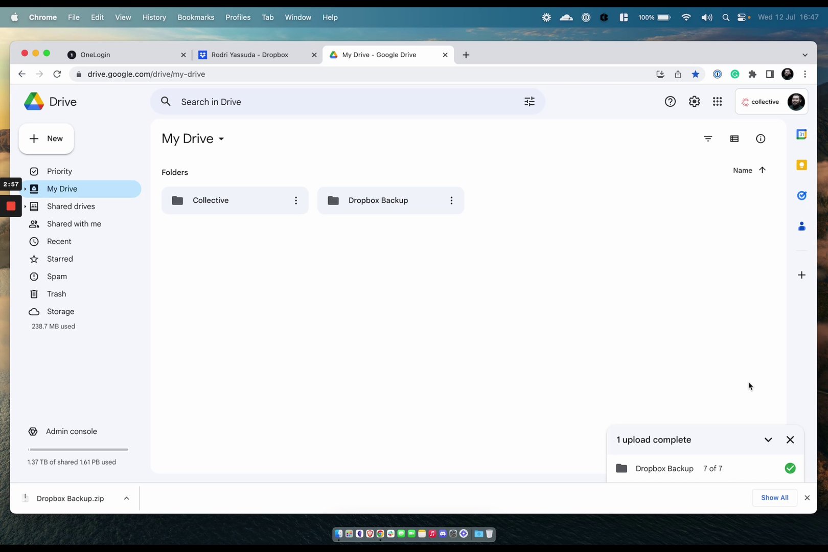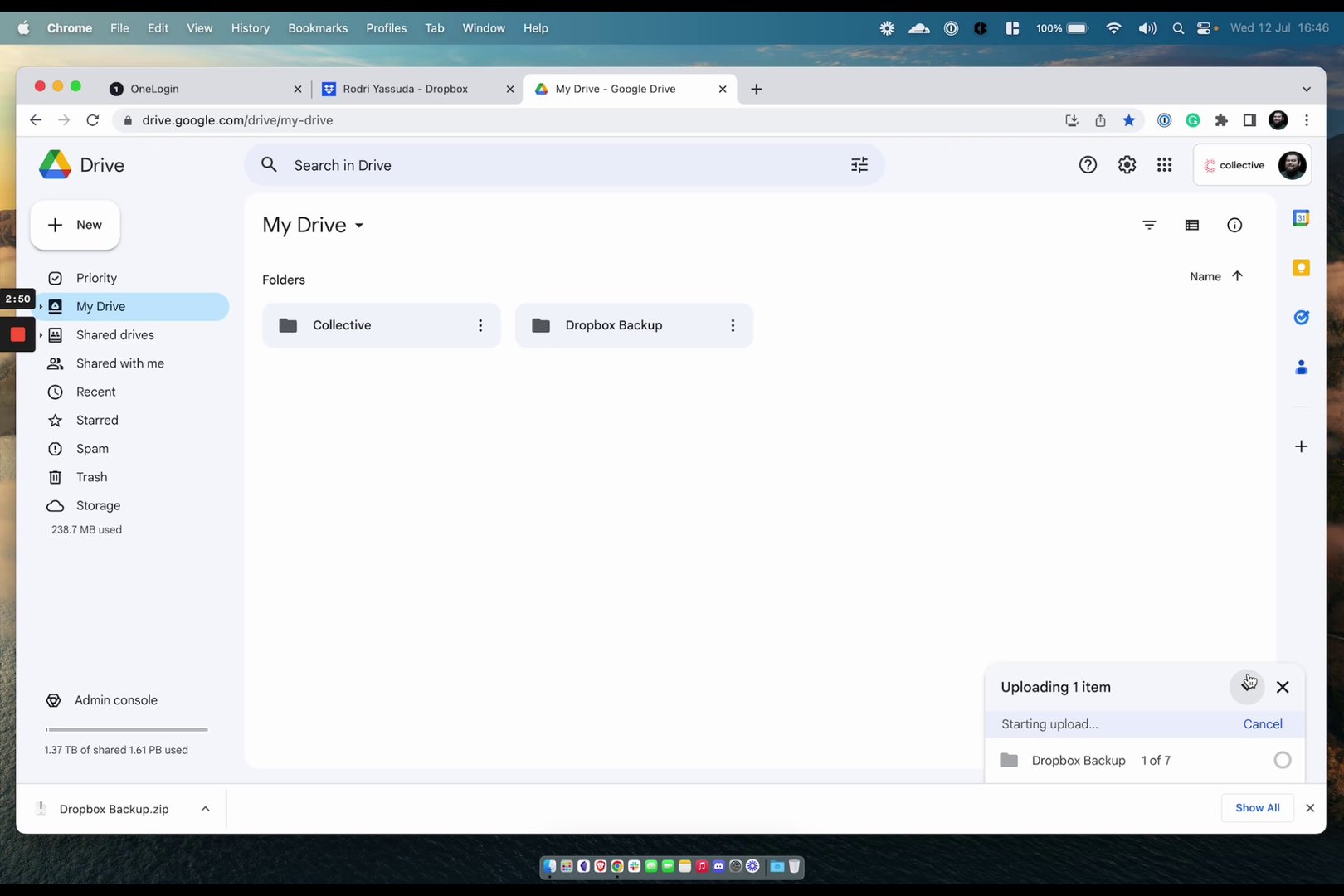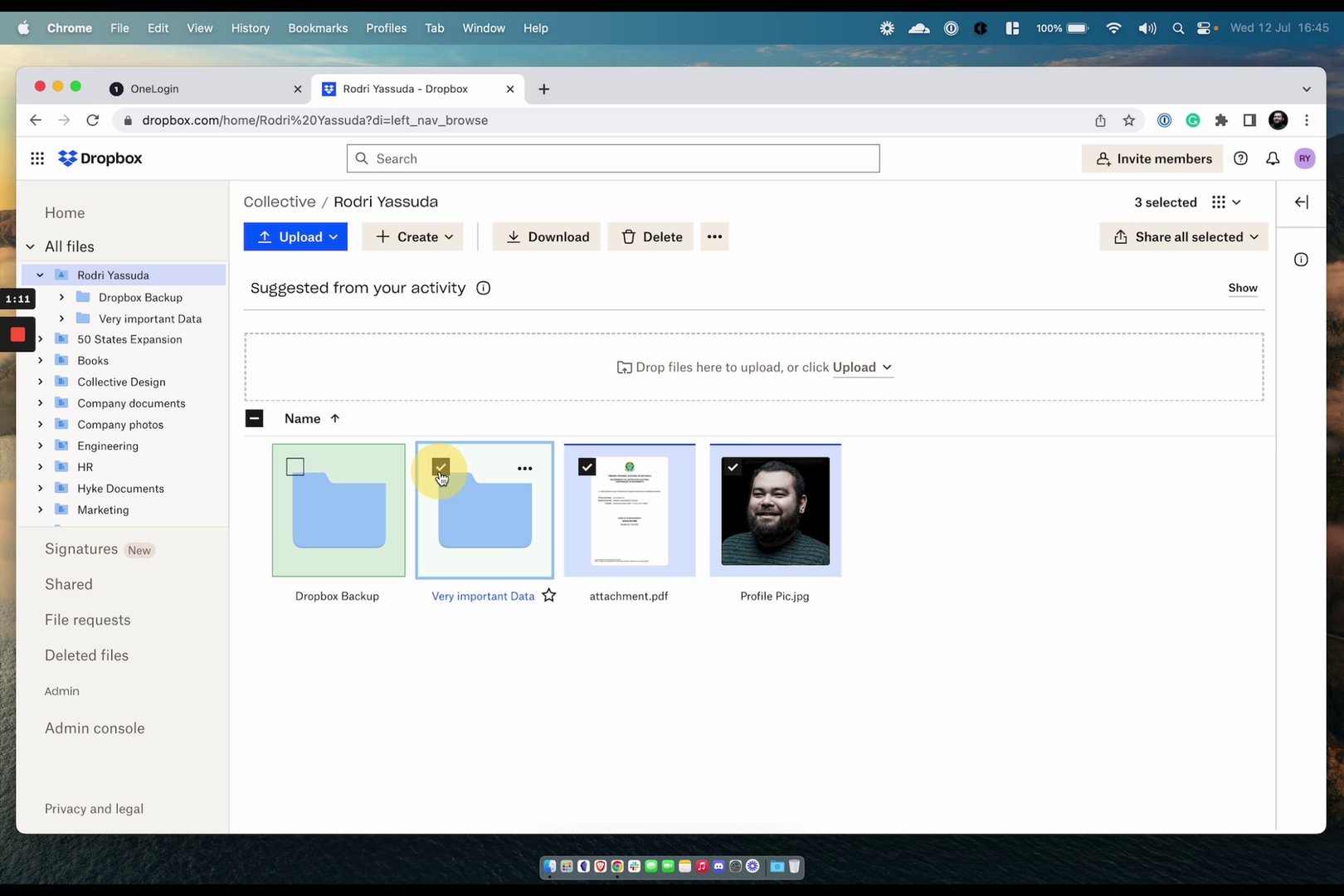Begin by accessing your Dropbox through your OneLogin portal.