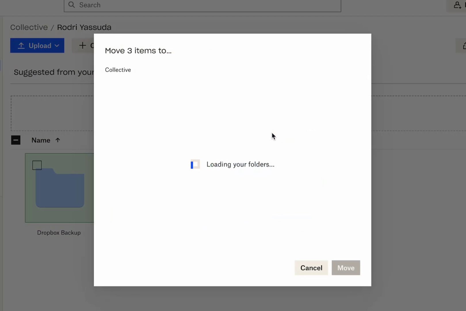 After selecting "Move," choose your destination folder, which is "Dropbox Backup."