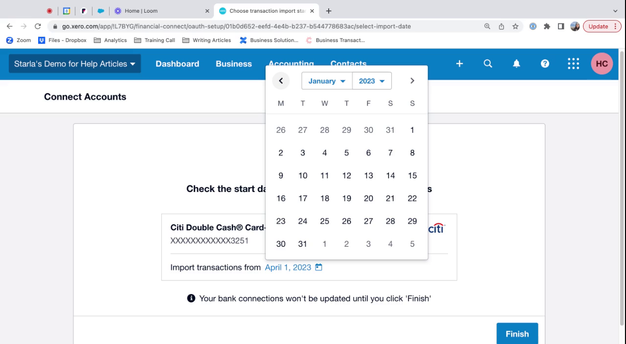 You will be prompted to specify the date range for importing transactions. Make sure to choose the first day of the month of your boxed date.